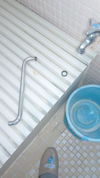 既設の蛇口に折れて残っているスパウト部を取り除き、綺麗に清掃して、新しいスパウトを取り付けました。