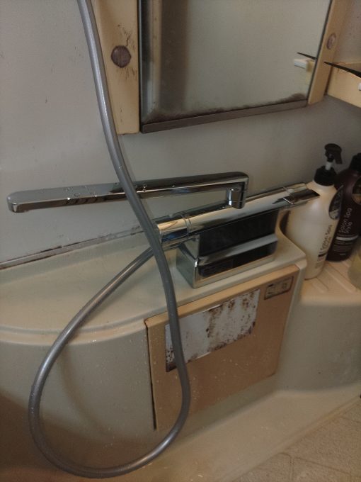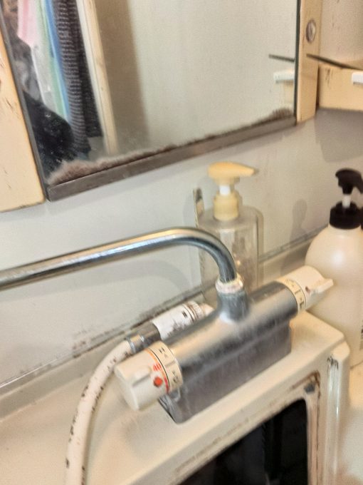 状況を説明させて頂き、快く新しい蛇口(サーモスタット)に交換してほしいとのご要望ですぐに交換作業に取り掛かりました。