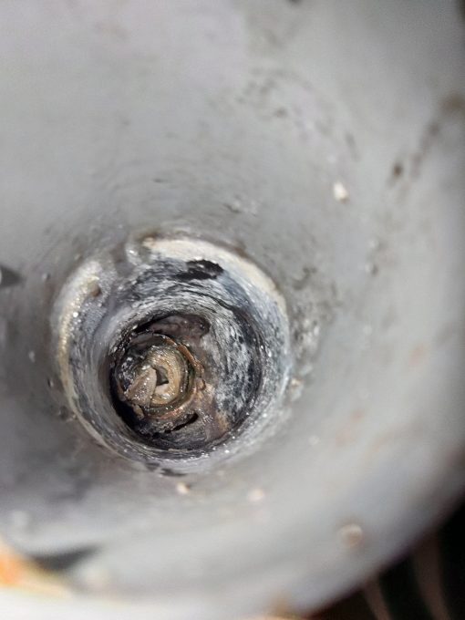 状況をくわしく調べる為、排水枡やシンク下のトラップ、ジャバラホースを外し点検しました。