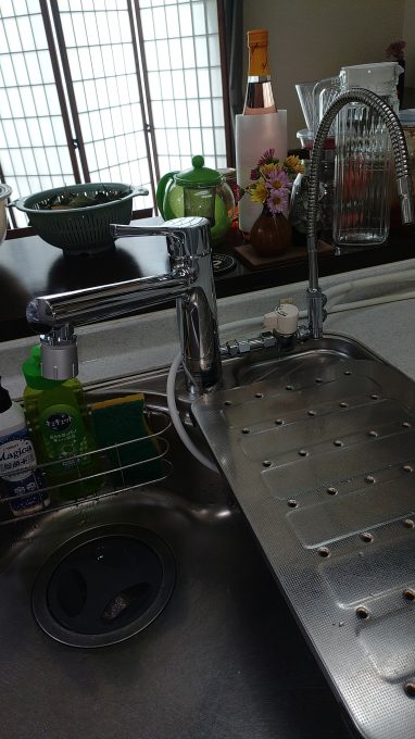 お客様に状況説明を行い、部品交換と蛇口交換をご提案しました。お客様から、蛇口も長く使っているので、新しい物と交換してくださいということで、台所蛇口交換を行う事になりました。