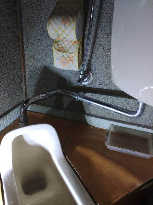 良く調べるとタンクから便器に洗浄水送る洗浄管のジョイントから水漏れしていました。使用年数、管全体の劣化から洗浄管交換作業を提案し、交換をお願いされました。