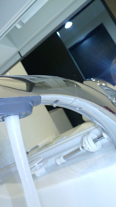 既設の蛇口を取り外し、水垢を綺麗に清掃して、新しい蛇口を取り付けました。