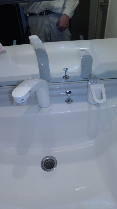お客様からは、ホースも伸びにくくなっているので、洗面蛇口を交換してくださいということで、洗面蛇口の交換を行う事となりました。