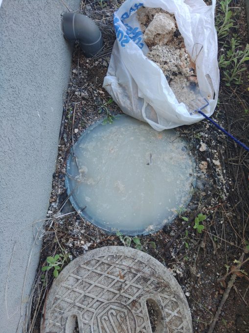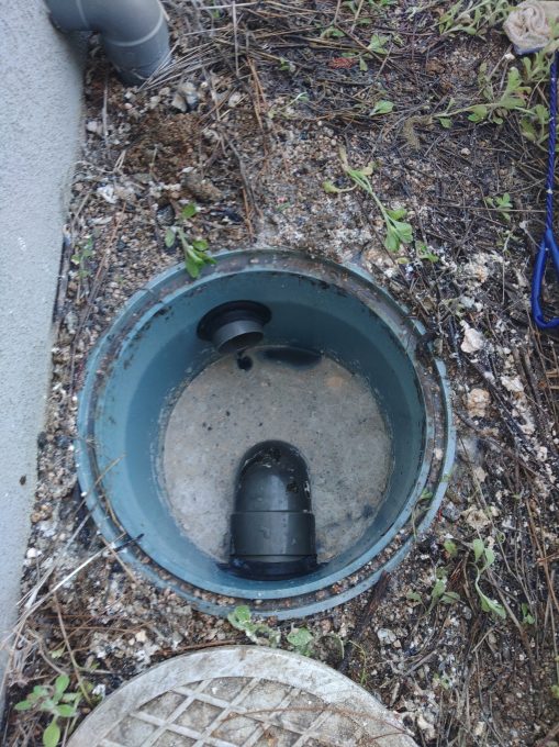 お客様邸に到着し、状況確認させて頂きました。台所排水が最近流れが悪くなり、本日全く流れなくなり、かつ外の台所排水枡が溢れてお困りでした。
