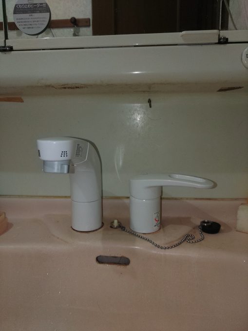 岡山県真庭市下方に洗面蛇口交換作業に伺いました。